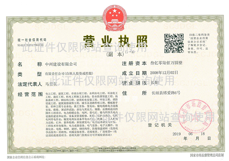 中州建設(shè)有限公司組建于2008年,是一家集電力、機電工程、石油化工工程施工總承包、建筑安裝、能源開發(fā)、市政環(huán)保、工程勘察、設(shè)計、監(jiān)理多業(yè)務(wù)于一體的綜合性企業(yè)。公司擁有住房城鄉(xiāng)建設(shè)部批準(zhǔn)的電力工程、機電工程和石油化工工程施工總承包一級資質(zhì)、鋼結(jié)構(gòu)工程專業(yè)承包一級資質(zhì),電力工程、機電安裝工程監(jiān)理甲級資質(zhì);國家能源局河南監(jiān)管辦批準(zhǔn)的承裝一級、承修一級、承試一級電力設(shè)施許可資質(zhì),并擁有防腐保溫工程、建筑機電安裝工程等多項施工一級資質(zhì),建筑工程、市政公用工程、冶金工程、環(huán)保工程等多項施工二級資質(zhì),及電力行業(yè)風(fēng)力發(fā)電、火力發(fā)電、新能源發(fā)電、變電工程、送電工程設(shè)計乙級資質(zhì),工程測量、巖土工程勘察乙級資質(zhì),承壓類特種設(shè)備(長輸管道、公用管道、工業(yè)管道)安裝、修理、改造許可資質(zhì)。公司具有強大的施工能力、完善的管理制度、高素質(zhì)的管理人才,機械...